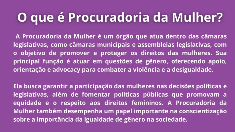 O que é a Procuradoria da Mulher